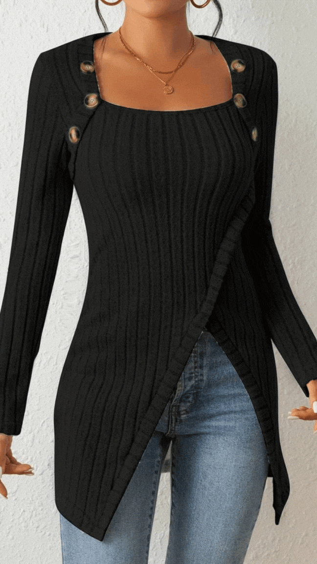 - Design Asymétrique Unique : Une coupe audacieuse qui ajoute du mouvement et un style contemporain à votre tenue.